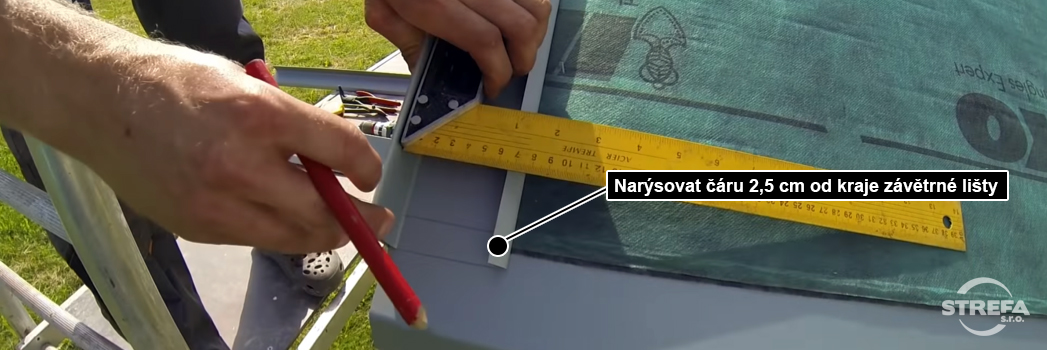 | Enne, kui hakkate tegelikku lee-redelit oma maja katuselepaigaldama, peate tegema mõned kohandused. Kõigepealt tõmmake katuse horisontaalsele osale joon, umbes 2,5 cm kaugusele katuseraua servast. |