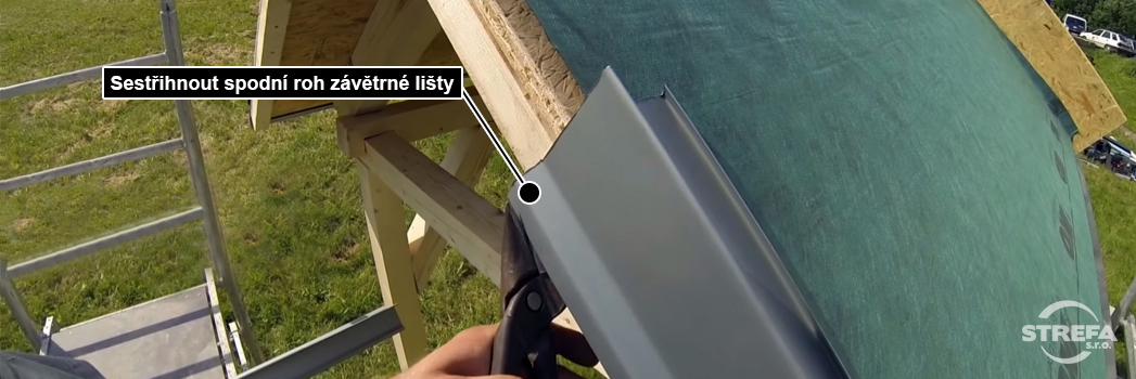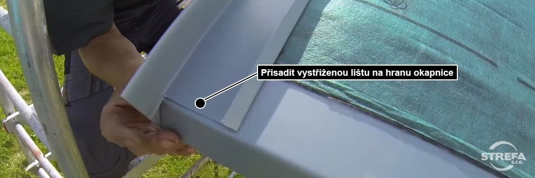 | Kinnitage modifitseeritud katusekrae katusekatte külgserva kül ge nii, et see jääks juba kinnitatud räästale ja piki kogu katusekatte pikkust. Asetage välja lõigatud osa paralleelselt räästaservaga. See väljalõige võimaldab ka räästad esteetiliselt küljelt katta. Selle sammuga on meil räästapalk kinnitamiseks valmis. |