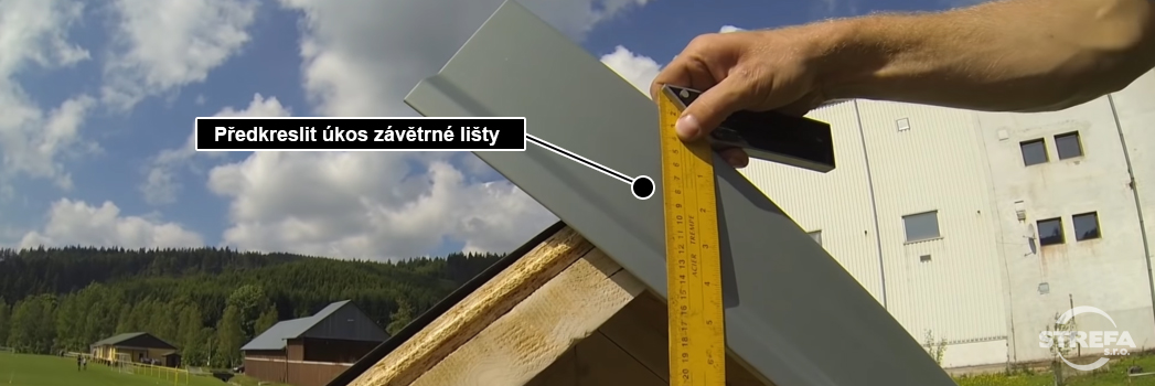 | Asetage ilmaplaat müüritise servale nii, et see jääks vajalikul määral üle harja serva. Kasutades puunurka , tõmmake harja servast piki katuse telge vertikaalselt kaldserva. |