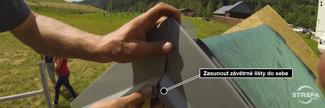 | Paigutage saadud 3 cm pikkune pleki kattumine leepealse rööpa horisontaalsel küljel tangide abil täisnurga all ülespoole . Viimases etapis töötame painutatud plekiga pärast seda, kui kaks leepealseid rööpaid on katuse külge kinnitatud. |